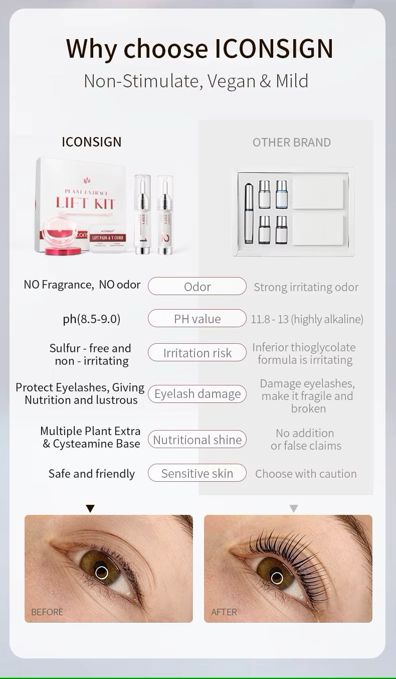 Enhance your natural beauty with the Iconsign Eyelash Perm and Eyebrow Lamination Kit – a professional-grade solution designed for safe and easy home use. This all-in-one lash lift and brow lamination kit uses gentle plant-based ingredients to give your lashes a long-lasting curl and your brows a fuller, defined look — results that last up to 3 months. Perfect for beginners, beauty enthusiasts, and salon professionals.